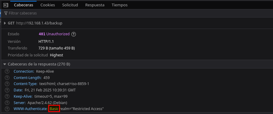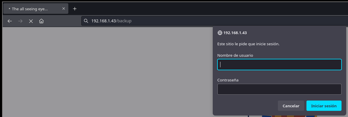 La ruta /backup se encuentra protegida por un auth_basic, realizo técnicas de password guessing sin éxito
