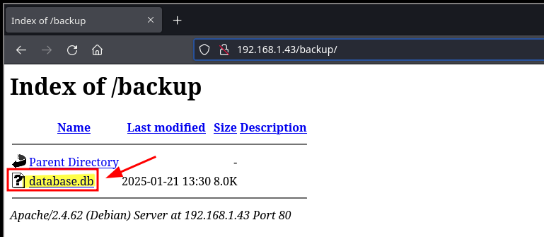 ❯ wget -q "http://192.168.1.43/backup/database.db"