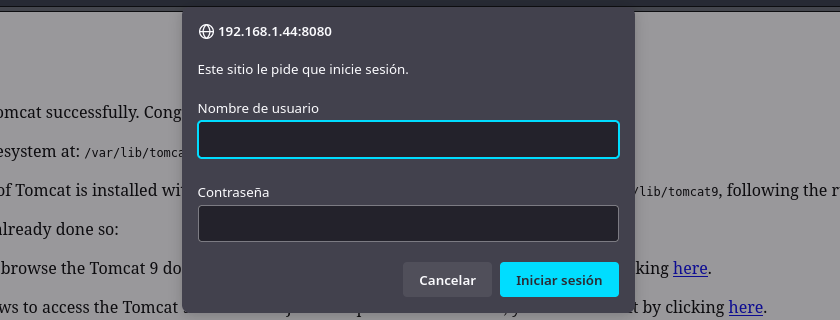 Accedo al Tomcat realizando técnicas de password guessing y obtengo éxito con tomcat:s3cret