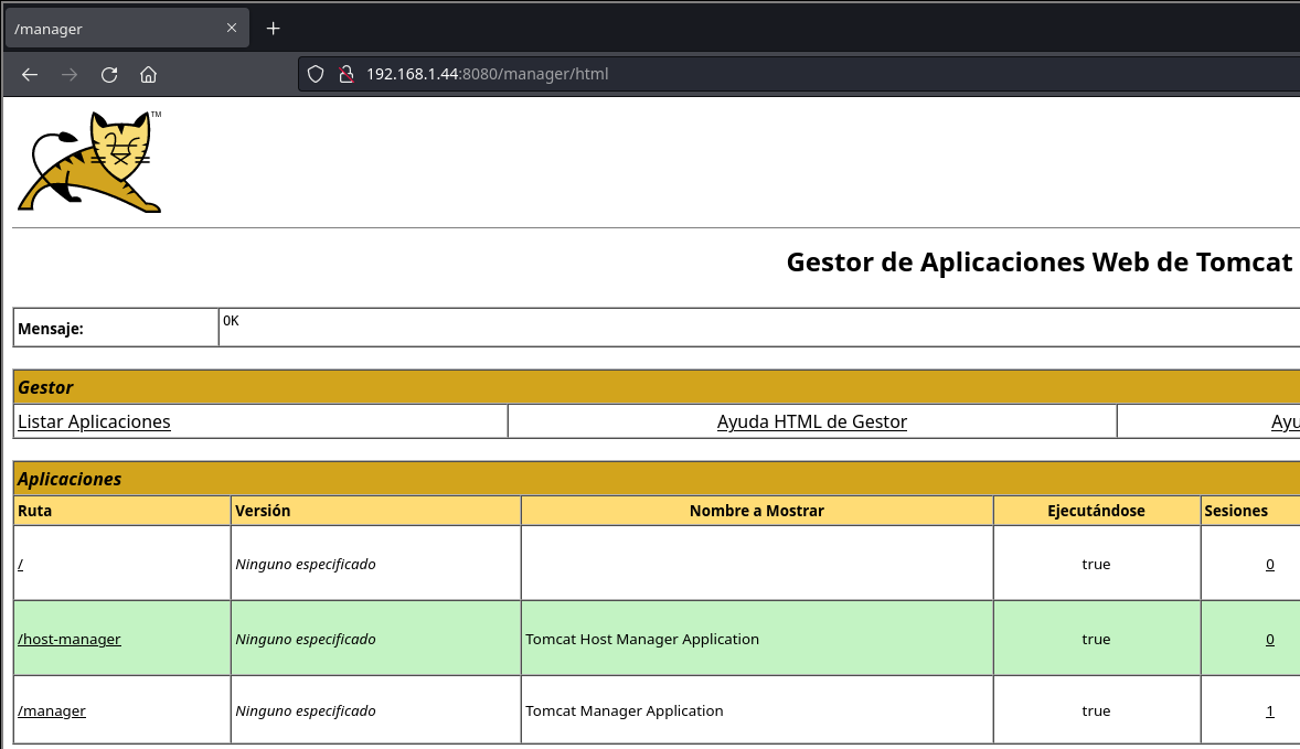 Al indentificar un Tomcat me dirijo a la ruta /manager (Manager App)