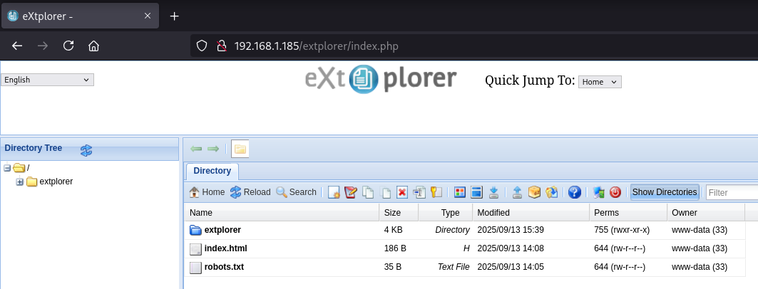Tanto en el nmap inicial como en el fuzzing, se observa la existencia de un robots.txt con la ruta /extplorer en Disallow