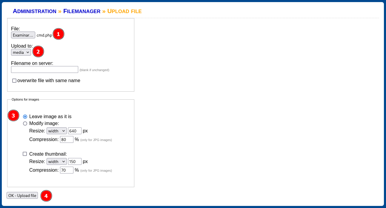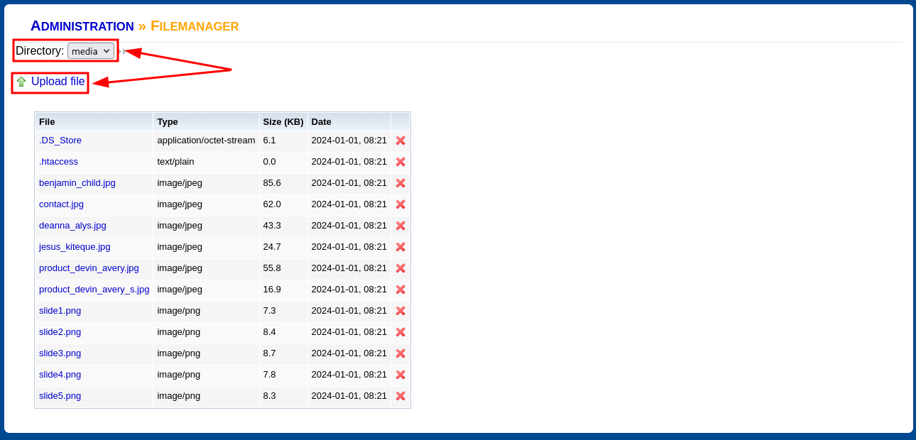 En Directory se puede ver que almacena los archivos subidos en la ruta /media, cargo una webshell en PHP con éxito