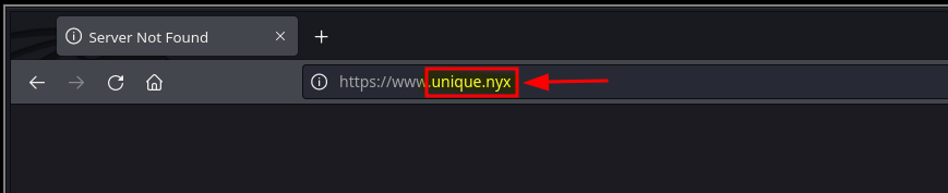 (Agrego el dominio encontrado unique.nyx a mi archivo /etc/hosts para futuros ataques)