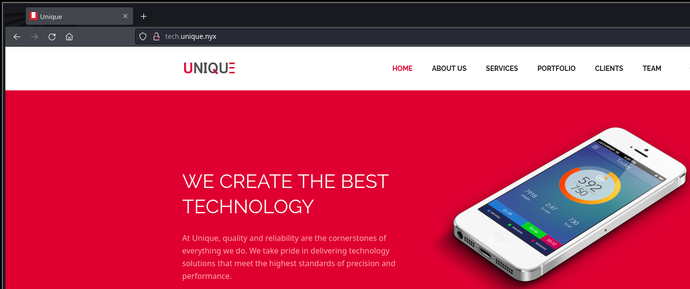 En el nmap inicial y en el sitio web, se puede ver que existe un redirect al dominio unique.nyx