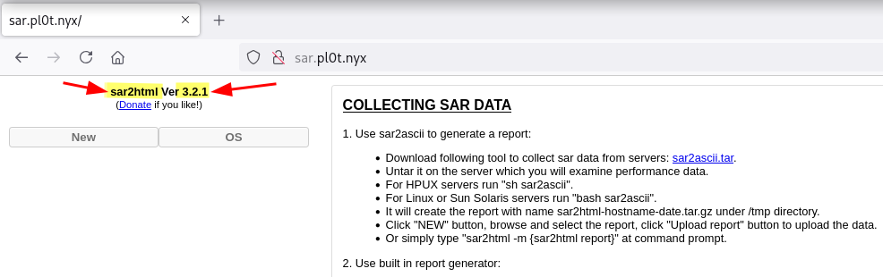 Encuentro un Sar2HTML y enumero la versión 3.2.1