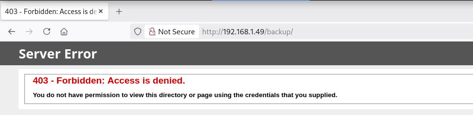 Backup (Status: 301) [Size: 150] [--> http://192.168.1.49/Backup/]