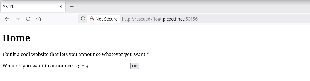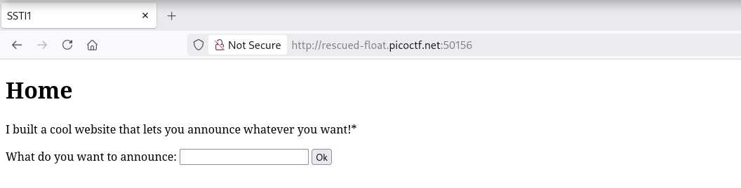 SSTI1 es un challenge de dificultad fácil dentro de la categoría Web Exploitation de la plataforma picoCTF y fue creado por el usuario VENAX.